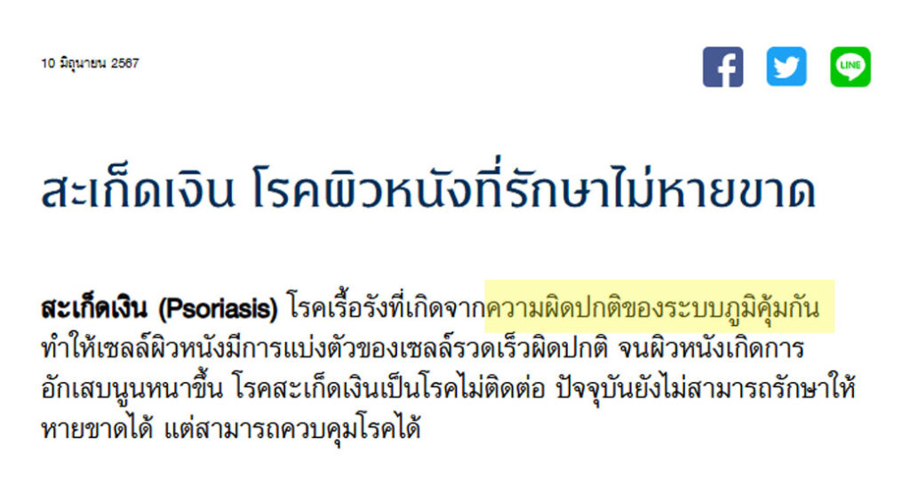 *** ข้อมูลจากเว็บไซต์โรงพยาบาลศิริราช ม.มหิดล เขียนบอกไว้ชัดเจนว่า โรคสะเก็ดเงินเกิดจากระบบภูมิคุ้มกัน ***