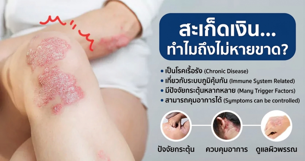 เพราะว่า “โรคสะเก็ดเงิน” สาเหตุจริง ๆ คือ ความผิดปกติของระบบภูมิคุ้มกัน มันทำให้ร่างกายสร้างผิวหนังเร็วเกินไป กลายเป็นผิวหนังอักเสบเลยทำให้คุณมีอาการคัน ผิวแตกร่วงเป็นขุยแบบที่คุณเป็นอยู่ยังไงละครับ